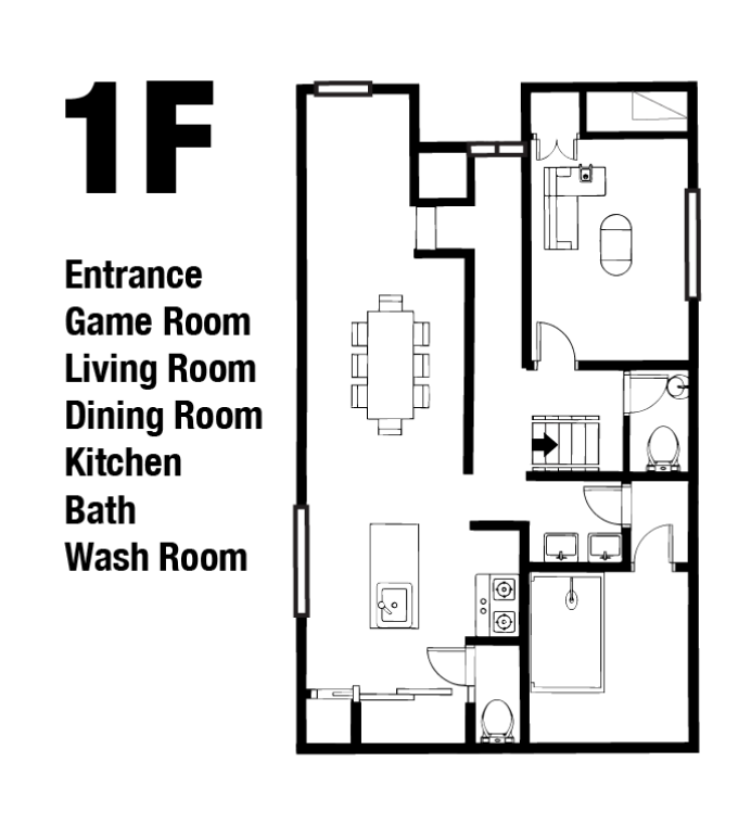 - 1Fにプロジェクター付きのゲームルーム常設。大人数でゲームが楽しめます。